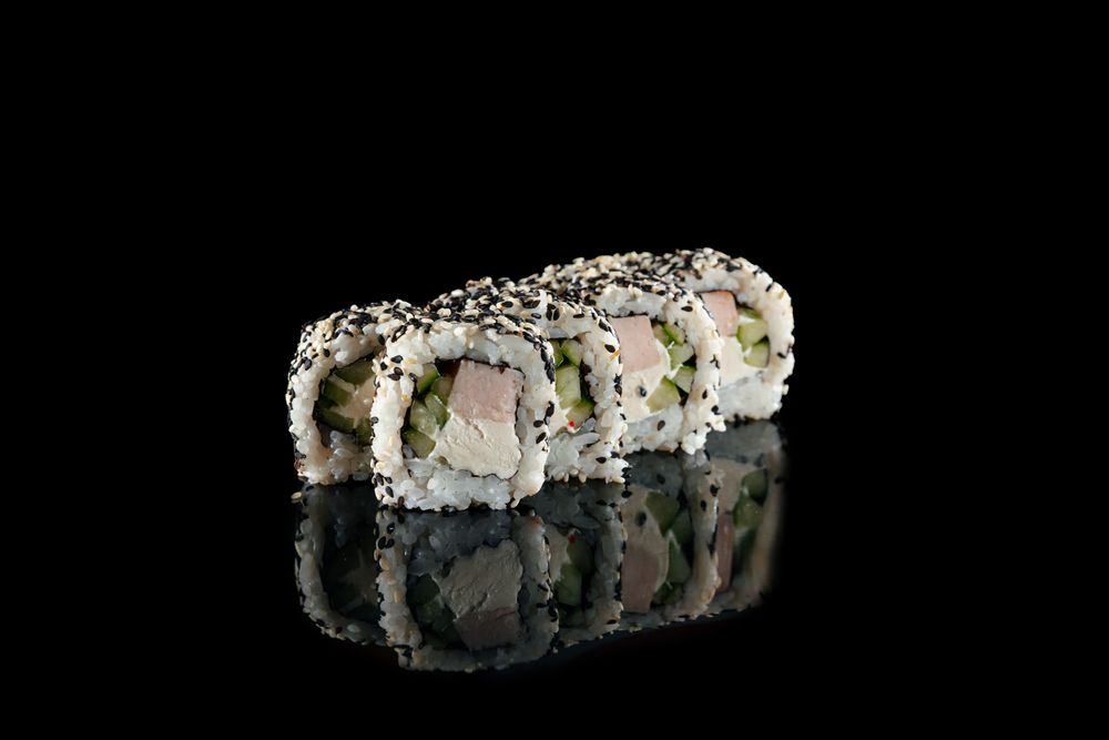 Рис, нори, творожный сыр, курица, огурец, кунжут
