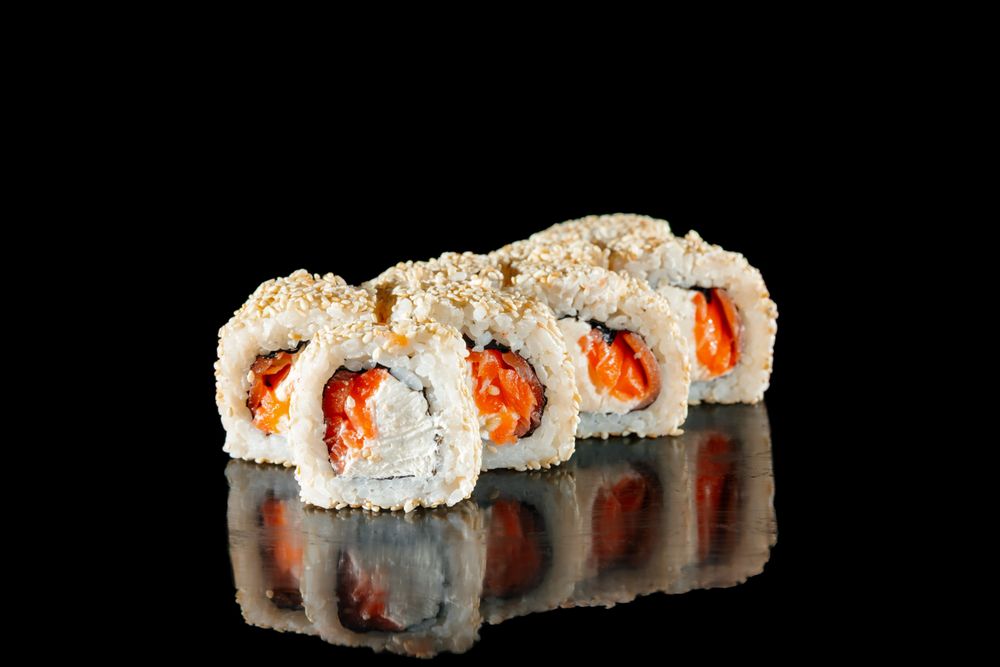 Рис, нори, творожный сыр, лосось, кунжут