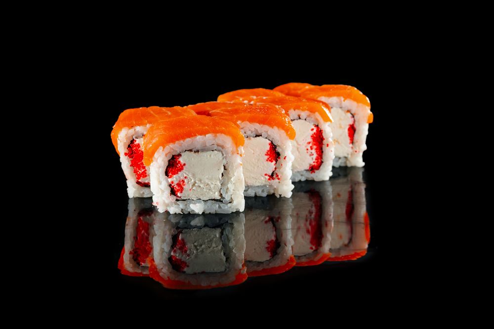 Рис, нори, творожный сыр, масаго, лосось