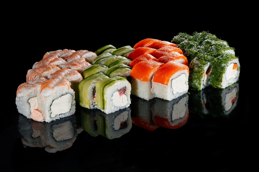 Тигровый ролл, магуро грин, двойная филадельфия, зелёная филадельфия