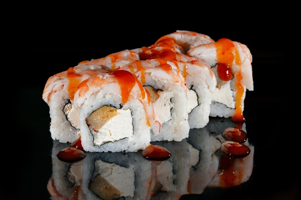 Рис, нори, сыр творожный, тамаго, креветка, соус свит чили