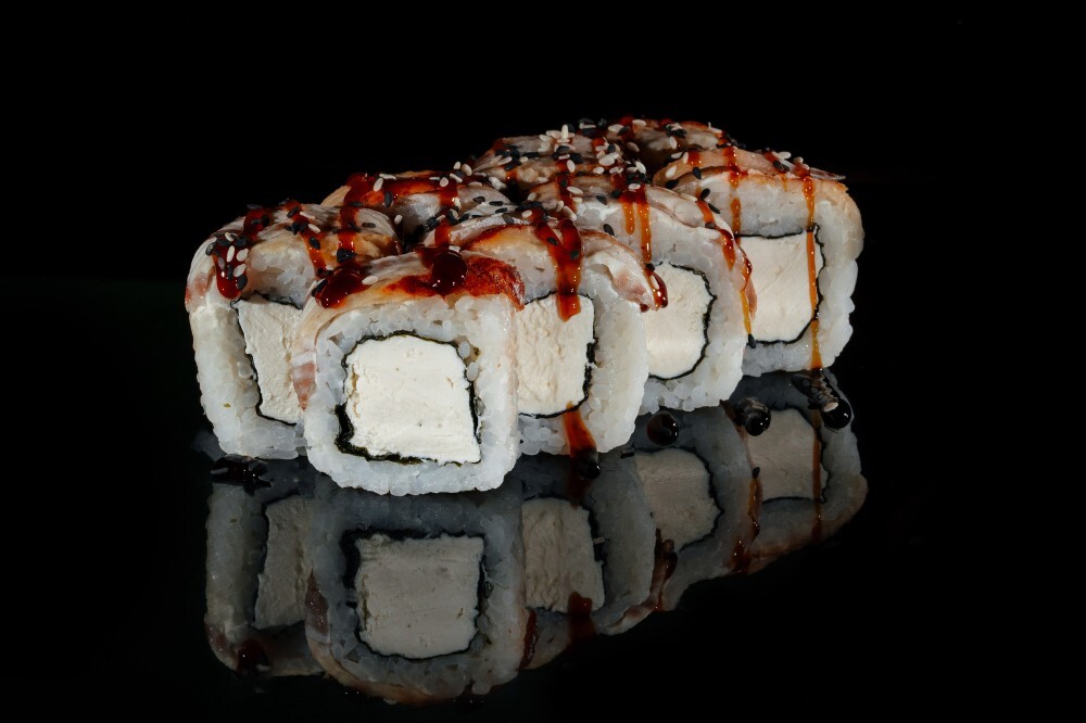 Рис, нори, сыр творожный, угорь, унаги, кунжут